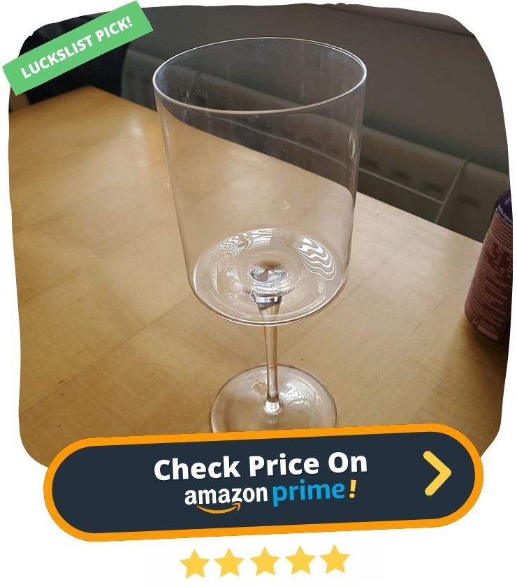 "Large wine glass, can fit over half a bottle in. They feel quite thin, but with a strong stem. Not managed to break them yet, so that's a positive. I like the flat bottom of the glass, it's a bit different to the norm. Other than that, it's a glass, it holds wine for the 10 minutes it takes me to drink a glass, does a fine job of holding alcoholic water."