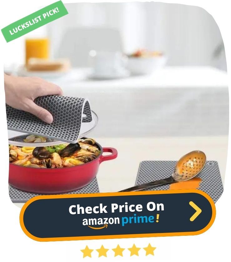 "I love this product because its versatile, easy to use and compact enough to pack away in your kitchen draw. I was not sure if these could handle the heat but they do! Great for my fan oven and electric hob. I rest pots, baking trays and utensils on here and find that I have less issues when cooking; Turning chips halfway, resting rice to steam cook off the heat, using as a restibg point while adjusting hob to lowe heat level. I highly recommend this product. I place mine together to make a larger square and leave them out of the worktop as I'm always cooking. Easy to wash if you soak them in warm soapy water then sponge down. You will need to towel dry after. They dont feel too hot after using them which is good."