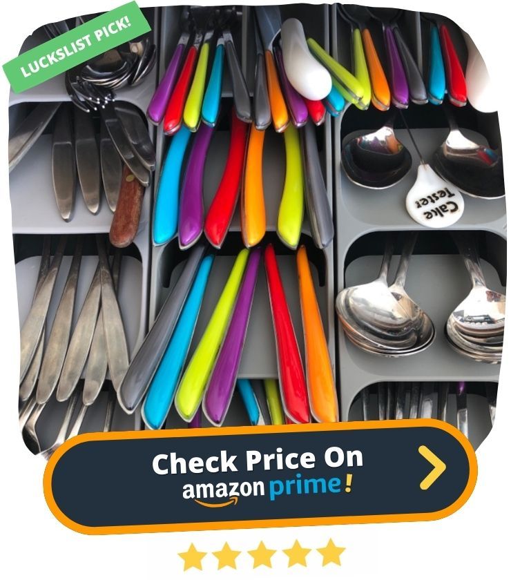 8. Organize your knives and cutlery with chicness and flair with this awesome Joseph Joseph Dream Drawer Organiser! It can hold up to 48 pieces of silverware and knives.