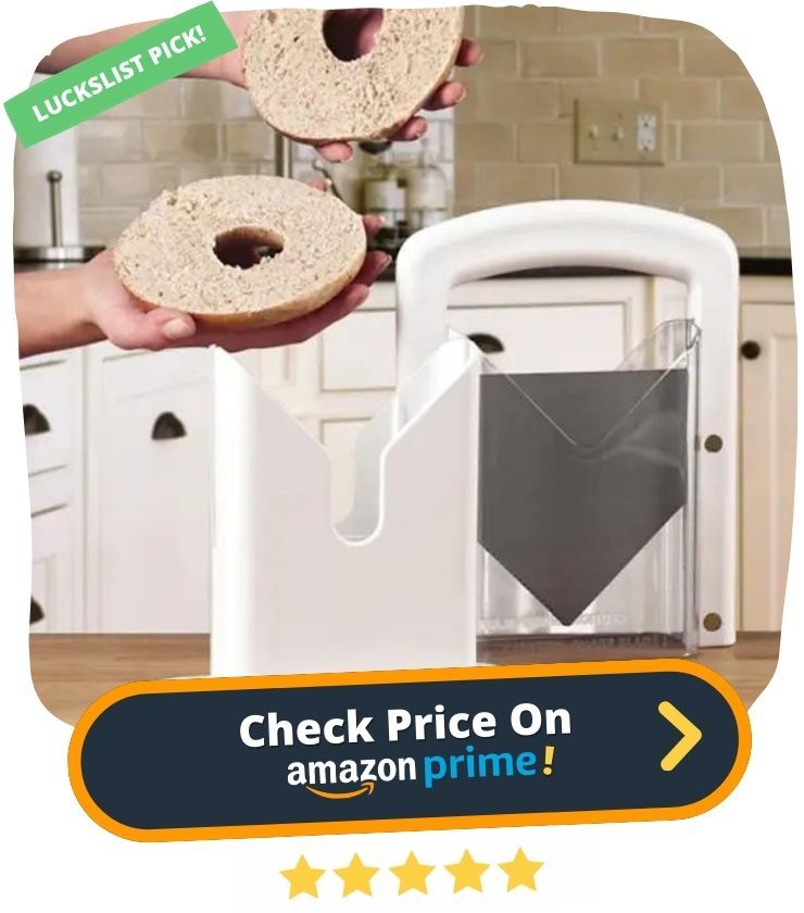 "I bought this for my dad as he has trouble using his left hand/wrist. He loves bagels (specifically toasted with sliced banana) but has been unable to cut them, until now! This little gadget is fabulous, just pop the bagel in and press the handle down. The blade itself must be ridiculously sharp as it hardly takes any pressure to slice through, thankfully it’s kept safe behind a plastic panel on each side so there’s no possibility of accidental injuries. My dad absolutely loves this and was so pleased to find it existed, anything that allows him to do things for himself are definitely worth it. I would also like to add that the item arrived well packaged the day after ordering. Really pleased."