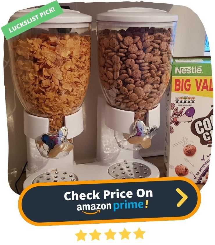 35. Looking for an easy and convenient way to dispense your favorite cereals? Look no further than the SQ Professional Double Cereal Dispenser. With just a twist of the knob, this dispenser will give you approximately 1 ounce of dry food. It's perfect for portion control and preserving freshness and flavor.