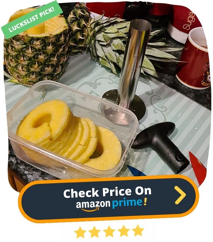 "I don't normally rave about gadgets especially kitchen ones, but you all need one of these. Fresh pineapple is delicious but trying to chop one up is a nightmare. Look no further as the simple to use gadget does it all for you, and leaves you a perfect receptacle for a spot of rum... Your pineapple comes out in a long string, ready to cut into rings. No fuss, no mess, and perfectly cut fruit. It's even a cinch to clean up afterwards. Highly recommended, don't delay, buy it today."