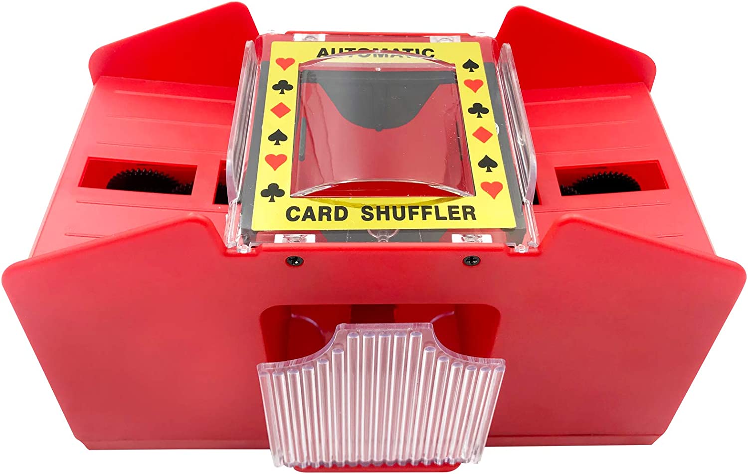 The Yuanhe Casino Automatic Card Shuffler is perfect for card lovers of all ages. This handy card shuffler makes shuffling your cards a breeze. Made from high quality bright red colored plastic, this card shuffler is both sleek and stylish. Its battery operated design makes it easy to use, and by pressing a button you can easily shuffle 4 decks of cards in less than a second! Great for seniors who struggle with arthritis.