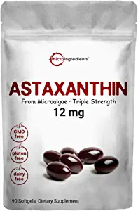 Are you looking for a superior antioxidant to support your immune health and assist with joint health & recovery from physical activity? Look no further than Natural Astaxanthin 12mg 90 Softgels! Our product uses maximum strength Natural Astaxanthin derived from micro algae combined with Sunflower Seed Oil for greater absorption. Each softgel is 12mg which provides 500 times more antioxidant power than Vitamin E and 6000 times more than Vitamin C!