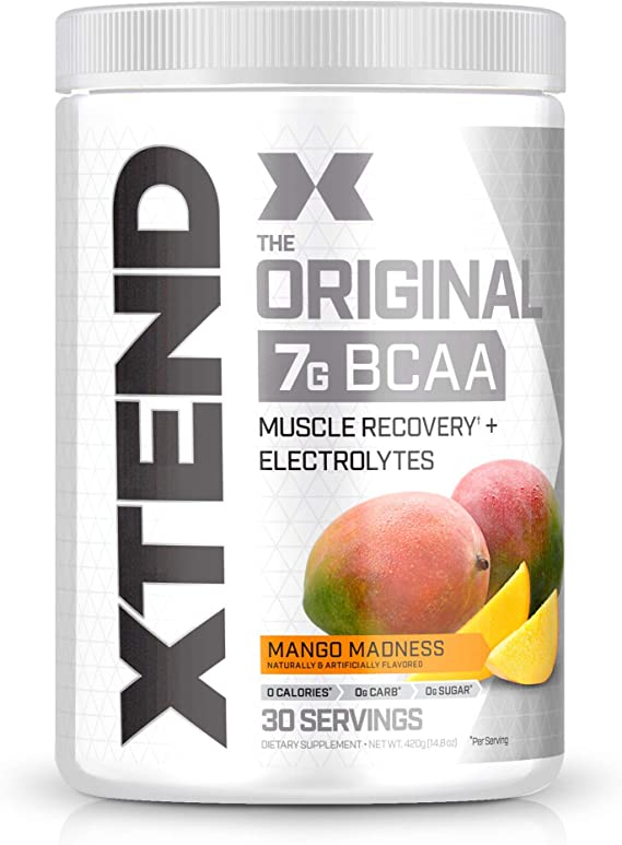Refuel and recharge your body post-workout with XTEND Original BCAA Powder Mango Madness. This delicious, sugar-free drink mix packs 7 g of BCAAs per serving in the scientifically proven 2:1:1 ratio to help support muscle recovery and growth. Our electrolyte blend helps you stay hydrated throughout your workout and beyond, while our third-party certified safety standards give you peace of mind that you're consuming only the best!