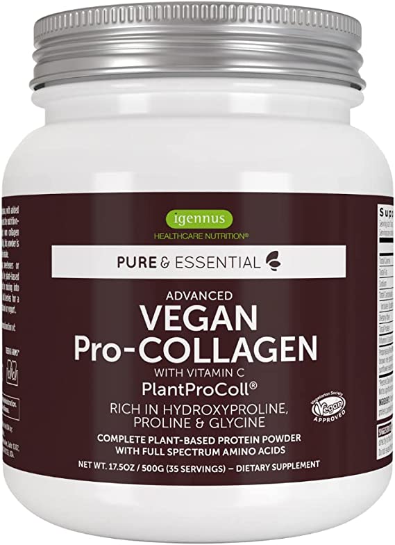 Introducing Igennus Healthcare Nutrition Essential Vegan Collagen! This revolutionary collagen alternative is a true plant-based solution for those looking for an ideal way to support their body's collagen production. With our specially chosen PlantProColl peptide blend, enriched with the 3 primary collagen amino acids, hydroxyproline, proline and glycine, this product is perfect for anyone who wants to maintain the nutritional profile of collagen without having to rely on animal alternatives.