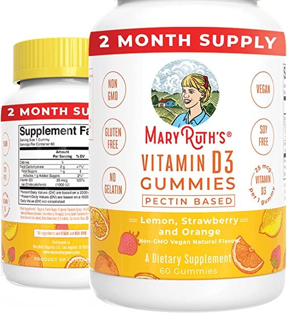 MaryRuth Organics Vitamin D Gummies are the perfect way to fortify your body with essential vitamins and minerals. Our vegan-friendly vitamin D3 gummies are sourced from non-GMO lichen and contain no lanolin like most other vitamin D supplements on the market. With delicious flavors of strawberry, lemon, and orange in each bottle, you'll look forward to taking them every day! The many benefits of Vitamin D3 include better absorption of phosphorus and calcium, improved immune functions, and stronger bones. Best of all, our gummies are easy to chew and tailored for adults aged 2 and over as well as children aged 12 and below.