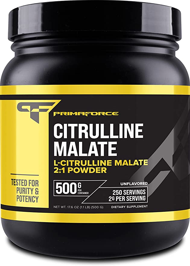 Are you ready to take your workout to the next level? PrimaForce L-Citrulline Malate Powder is designed to bring out your best performance yet! Our supplement offers all the benefits of L-Citrulline Malate, a popular amino acid and pre-workout supplement. As an added bonus, you'll get 500g of powder, which at 2g per serving provides a total of 250 servings – ensuring that your supplement doesn’t run out just as you start seeing results! What's more, our product is Non-GMO, gluten-free, and contains no additives or preservatives.