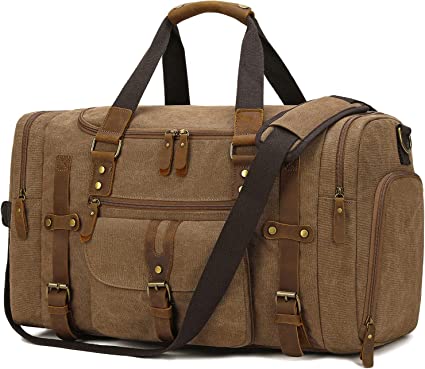 Introducing the amazing YSHFOX Duffle Bag for Men Genuine Leather! Not only does it look great, but it is also incredibly durable and easy to use. Crafted with soft 100% high-density cotton canvas paired with top quality crazy horse leather, this handsome duffle bag not only looks luxurious, but is also built to last you for years of daily use. A robust bronze tone hardware and heavy-duty large zipper combine to offer unbeatable protection and security while on the go. But that's not all—thanks to its overlarge dimensions of 21.7 x 9.8 x 11.8 inches, you can store pretty much everything you need for your next adventure in this premium duffle bag!