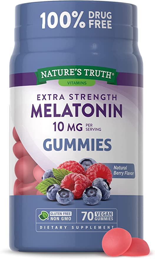 Get the natural sleep you've been dreaming of with Nature's Truth Melatonin 10mg Vegan Gummies! Our chewy gummies are packed with 10mg of trusted melatonin for a delicious and reliable way to fall asleep faster and stay asleep longer. Studies have shown that supplementing your diet with melatonin can help you drift off more quickly, experience the deeper stages of restful sleep, and wake up feeling recharged.