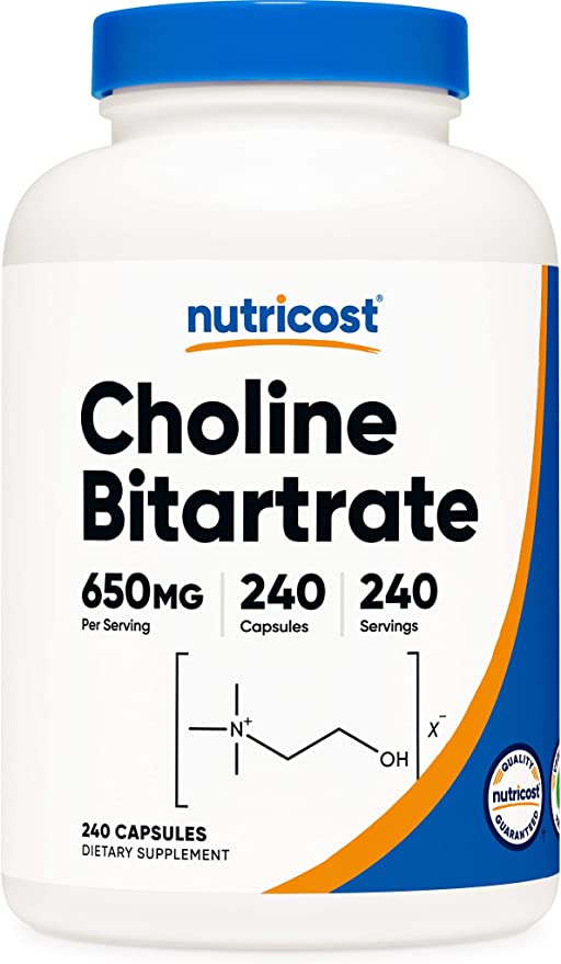 Get all of the incredible benefits and advantages of Choline Bitartrate with Nutricost's 650mg capsules. With a whopping 650mg per capsule, 260mg of that being pure Choline, you get nothing but the best! Plus, each bottle has 240 servings so you won’t have to worry about running out anytime soon. Nutricost Choline Bitartrate is designed to be both vegetarian friendly and gluten and soy free while also being Non-GMO and manufactured in an FDA registered facility compliant with GMP standards - Nutricost takes your health seriously!