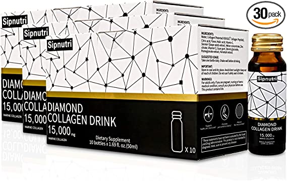 Sipnutri Diamond Liquid Collagen Drink 30 Pack is the ultimate beauty accessory! Unquestionably the best beauty drink collagen supplement on the market, this hydrolyzed liquido colageno provides a powerhouse of marine collagen, vitamin C, SkinAx, and other natural extracts to give you radiant skin, hair, nails, and joints & bones. The combination of these ingredients creates an unbeatable blend designed to nourish your body with vital nutrients that promotes body health.
