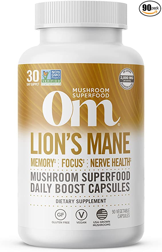 Introducing Om Mushroom Superfood Lion's Mane Mushroom Capsules! Looking to come up with a smarter way to stay energized and focused? Don't just take any supplement, take something that works. Our high-quality Lion's Mane mushroom powder supplement capsules have been scientifically-tested to provide maximum memory support, focus, clarity, and nerve health - all in an easy-to-take product that fits your daily routine.