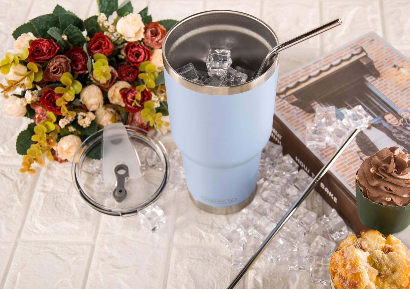 The lids are designed with a straw hole, and the tumbler comes with a straw for easy sipping.