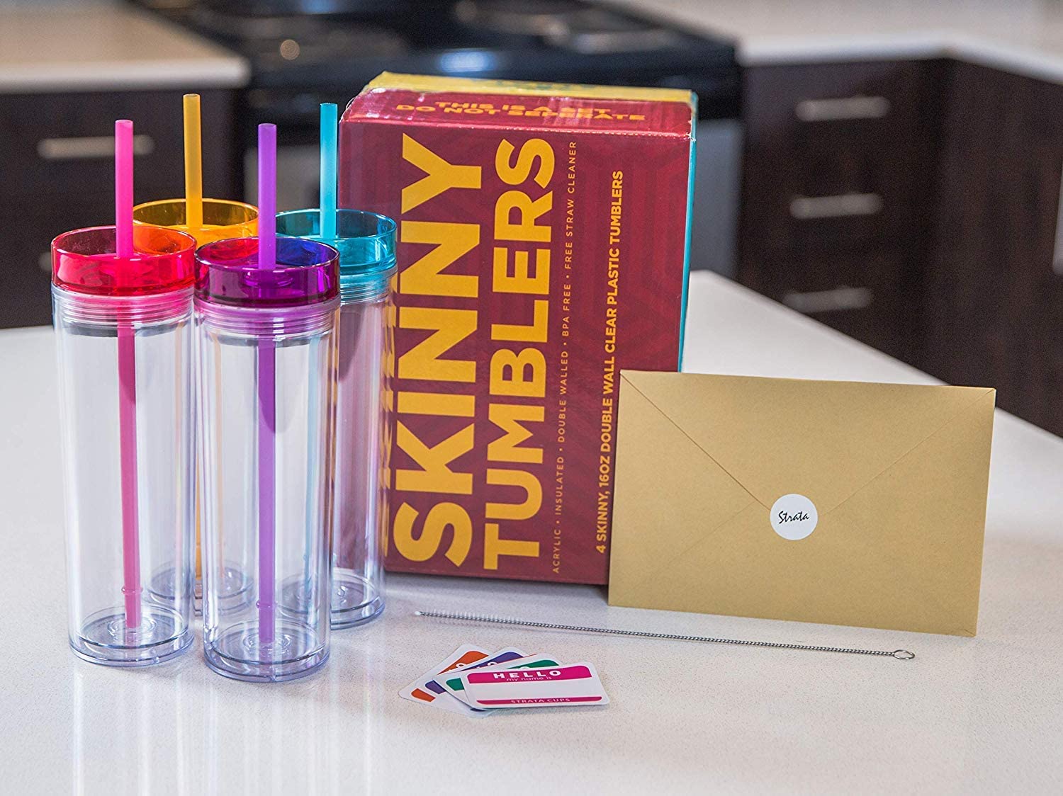 Go grab a set of these Skinny Acrylic Tumblers with Straws and you, your family, and friends can enjoy your favorite drinks in color!