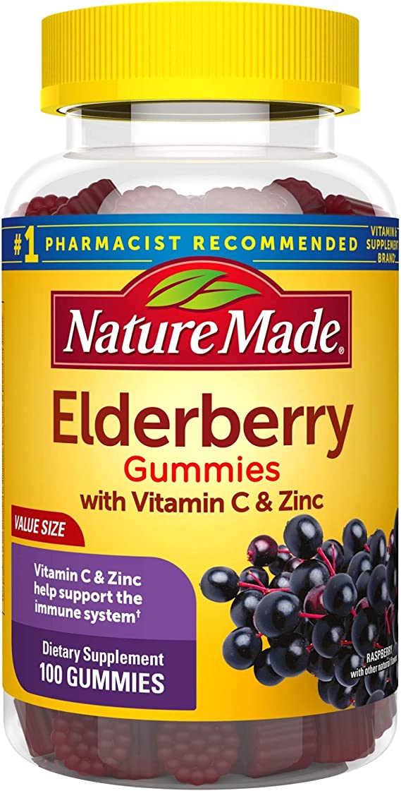 Welcome to Nature Made Elderberry with Vitamin C, your perfect tool to help support your immune system. Our delicious elderberry gummies are packed with 100mg of black elderberry fruit extract, plus 90 mg of Vitamin C and 7.5 mg of Zinc – the key nutrients needed to keep your body healthy and strong! Every bottle contains a 50-day supply of delicious, immune-supporting elderberries, so you can always stay one step ahead of colds, flus and other pesky ailments.