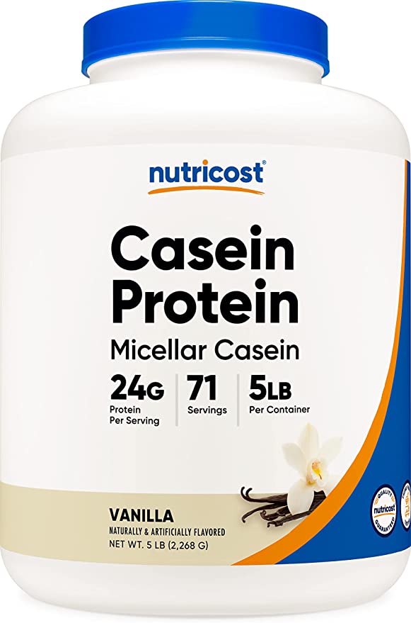 Introducing Nutricost Casein Protein Powder 5lb Vanilla! This protein powder is ideal for anyone looking to build muscle, gain strength and improve their overall health. Our casein protein is made with only the highest quality ingredients – 100% vanilla flavored Micellar Casein – sourced from a GMP Compliant and FDA Registered Facility. Feel confident in knowing that this product is Non-GMO and Gluten Free.