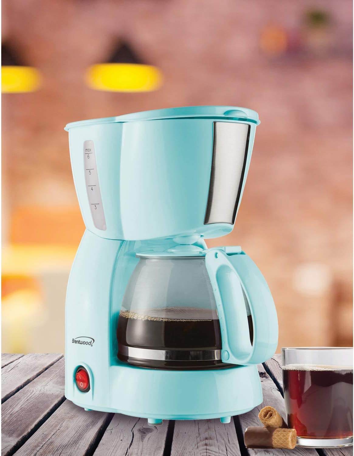 The Brentwood 4-Cup Coffee Maker is perfect for anyone who loves a freshly brewed cup of coffee from a cool blue compact coffee maker.