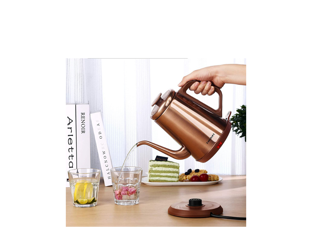 The DmofwHi electric gooseneck copper tea kettle offers effortless precision to make that ideal cup of your favorite beverage.