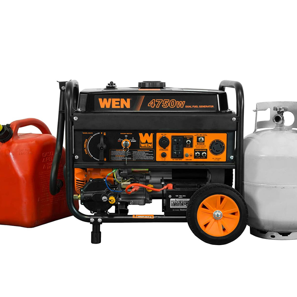 The WEN DF475T Dual Fuel 120V/240V Portable Generator is the perfect power source to have around during emergencies and power outages. It's easy to switch between gasoline and propane and it can produce up to 4750 surge watts and 3800 running watts. The generator also includes two 120V GFCI outlets, a 120V/240V NEMA 30A twist lock, and a 12V DC cigarette-lighter-style plug. It has a 4-gallon tank that can provide up to 11 hours of half-load run time and a 2-year warranty.
