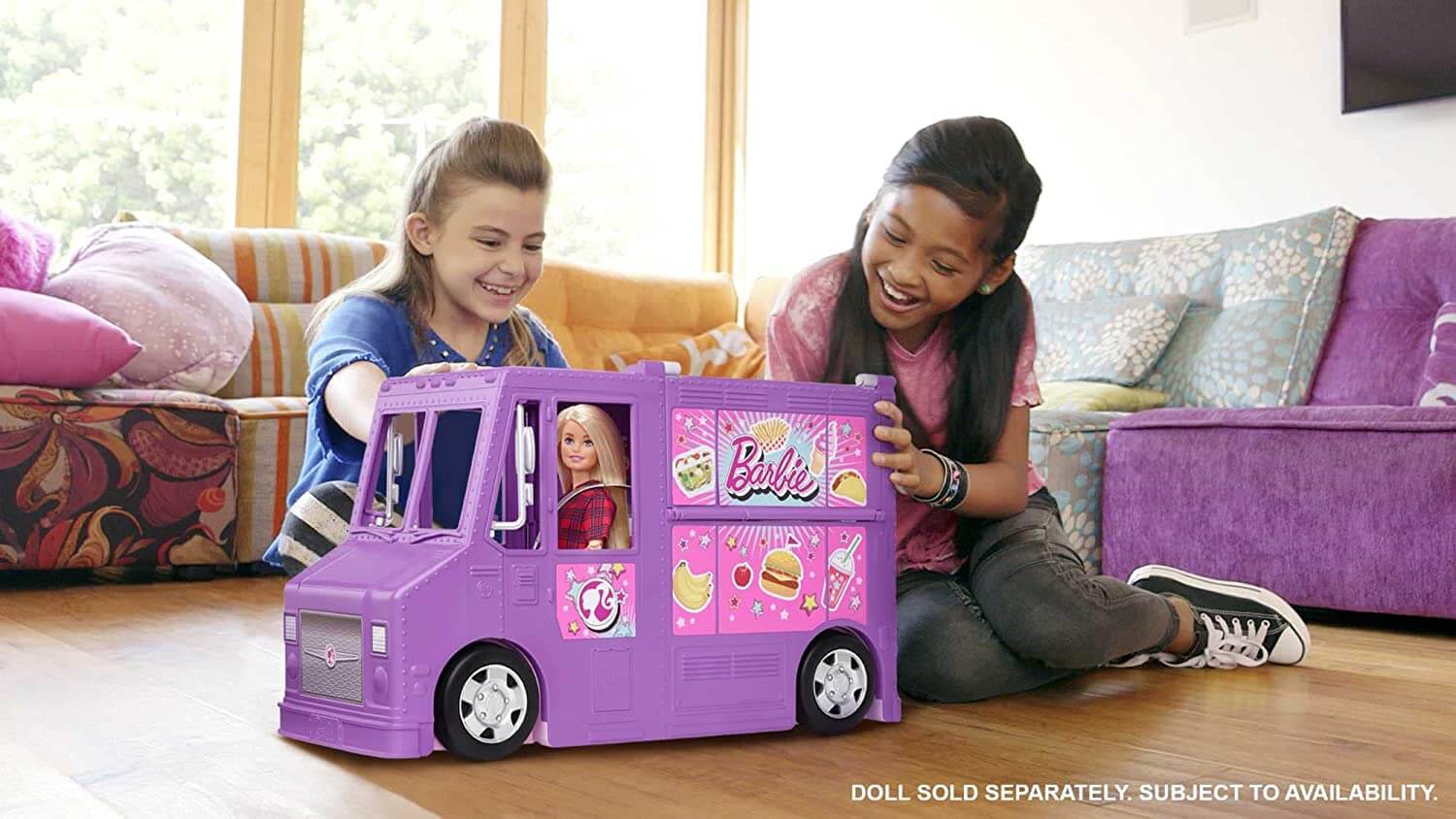 The Barbie DreamCamper is the perfect vehicle for your kids to explore the world with Barbie and her friends. The camper comes with two seats in the front cab that can be pulled up to create chairs for the table.