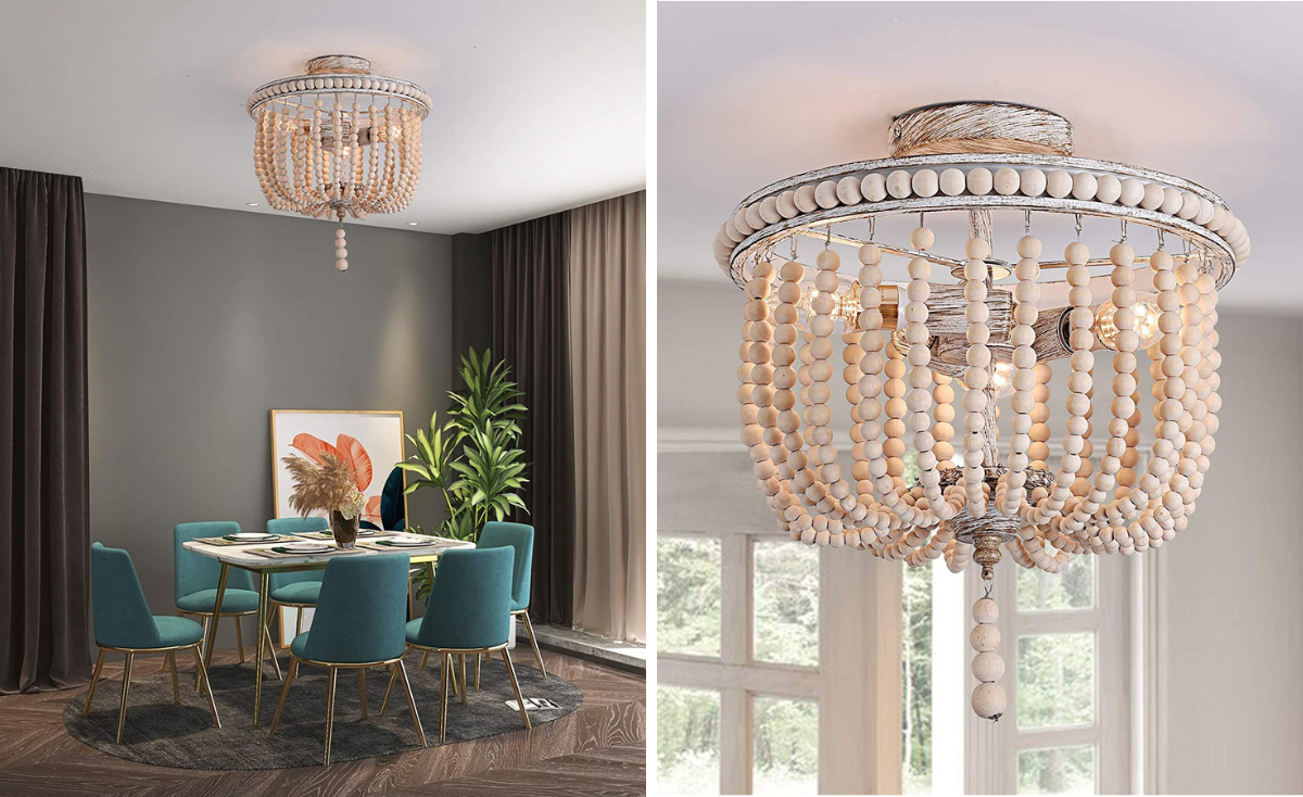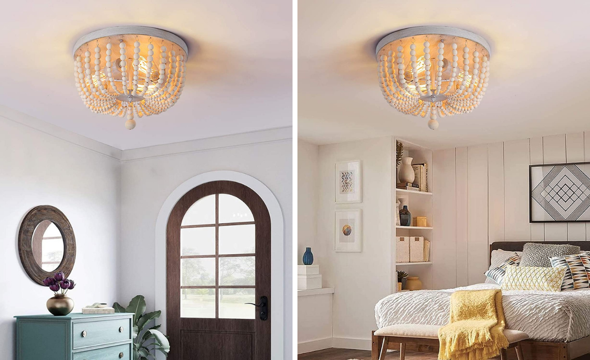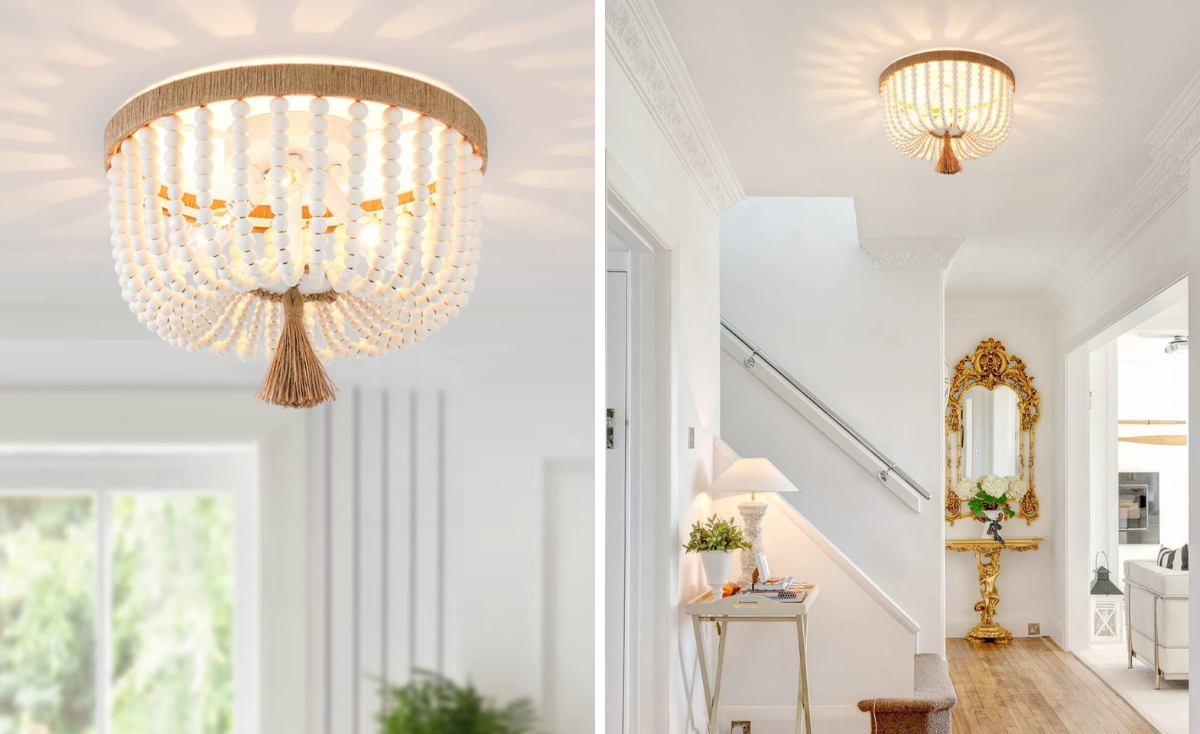 Amazon's Choice for wicker ceiling fixtures, the Bohemian Flush Mount Beaded Chandelier brings light and beauty to any room! The beading is affixed with two natural Bohemian hemp ropes giving them extra robustness. This eye-catching piece of décor will instantly transform your home as it replaced a fan that never worked quite right in my own. Its size makes it ideal for entryways, bedrooms, kitchens, living rooms, and other spaces alike, adding elegance wherever you need it most! So, pick up your own Bohemian Flush Mount Beaded Chandelier today and make your home into a stunning masterpiece!
