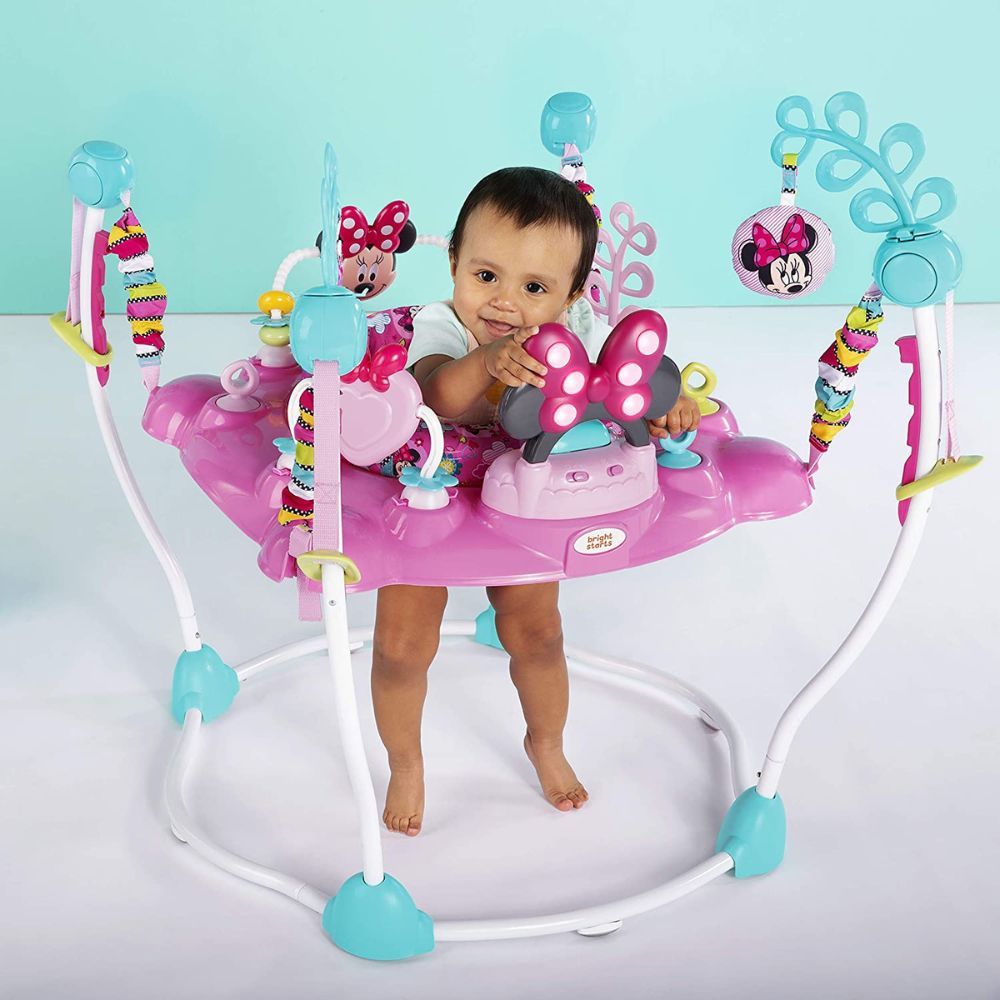 Bright Starts Activity Jumper is designed to stimulate and entertain babies while they are learning to stand and walk. The activity center is available in 3 different themes including Minnie Mouse PeekABook, Finding Nemo, and Minnie Mouse Besties.