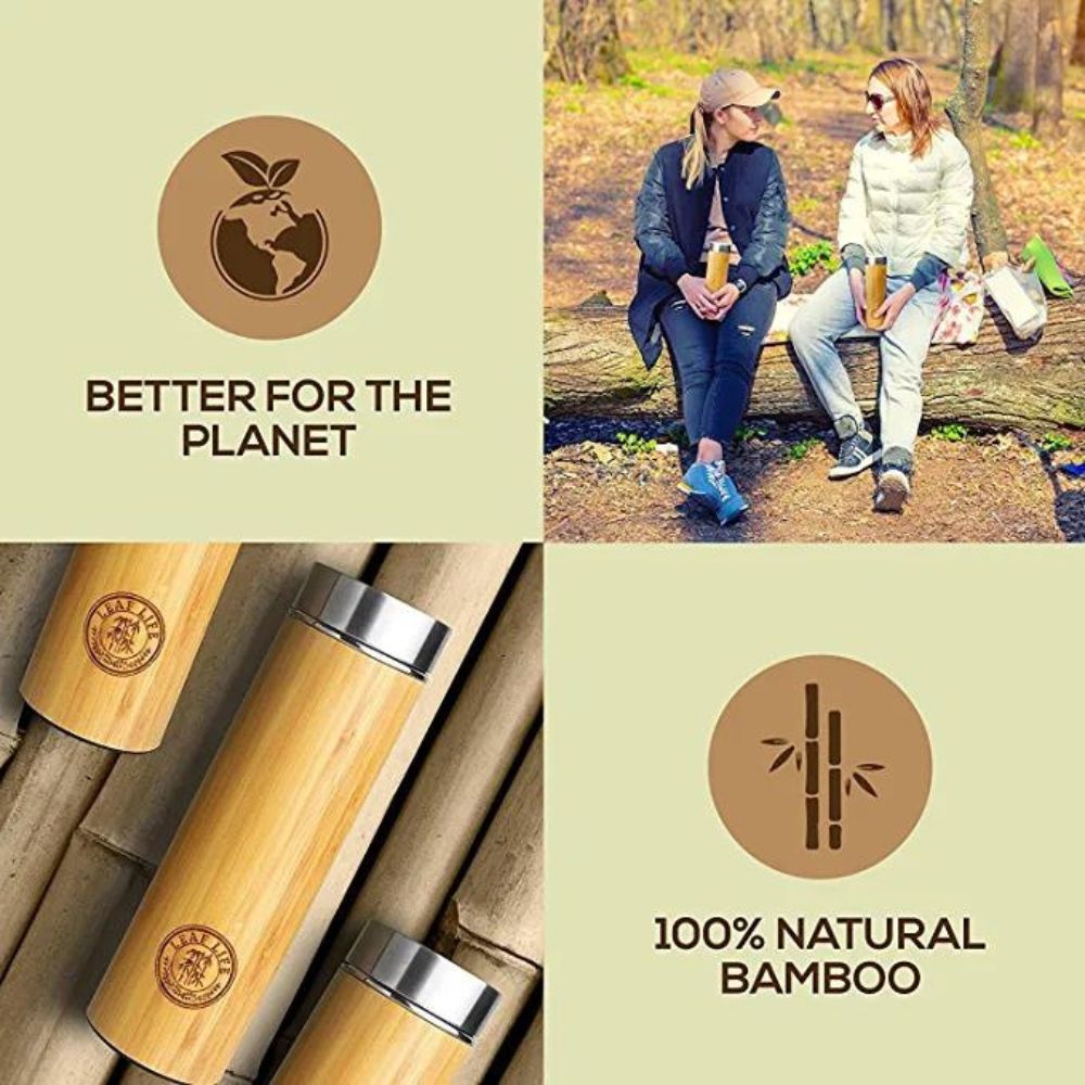 LeafLife Premium Bamboo Thermos with Tea Infuser & Strainer