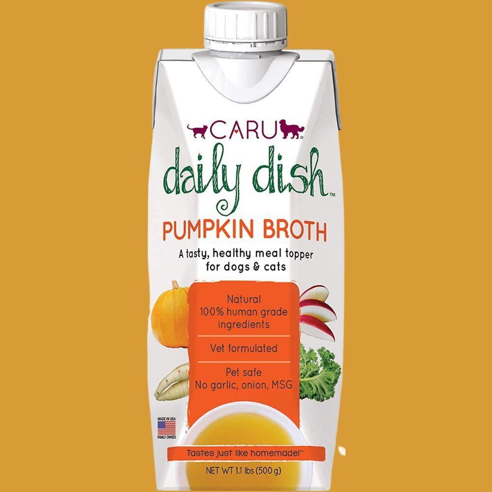 CARU Daily Dish Pumpkin Broth is a delicious and healthy meal topper, Vet formulated to help pets thrive. It's packed with only natural, human-grade ingredients, with no added preservatives, colors, onions, garlic, salt or MSG.
