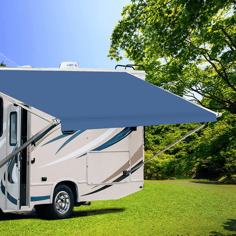 For those seeking more expensive and higher-grade materials, patchwork cloth sunbrella fabric or woven acrylic may be the ideal choice when replacing their RV’s manual awning.