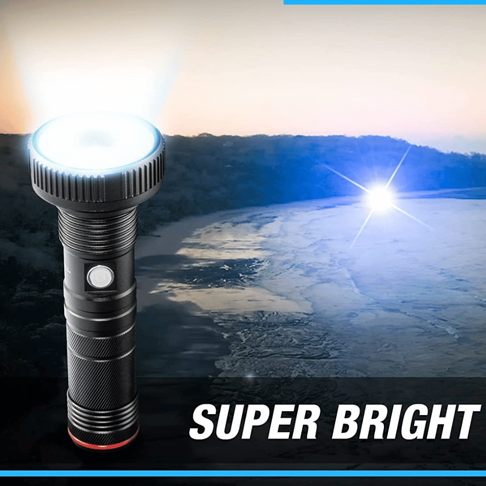 This powerful bright light rechargeable flashlight has so much to offer with its 10,000 high lumens and XHP50.2 LED chip outputting up to 1650 feet of light.