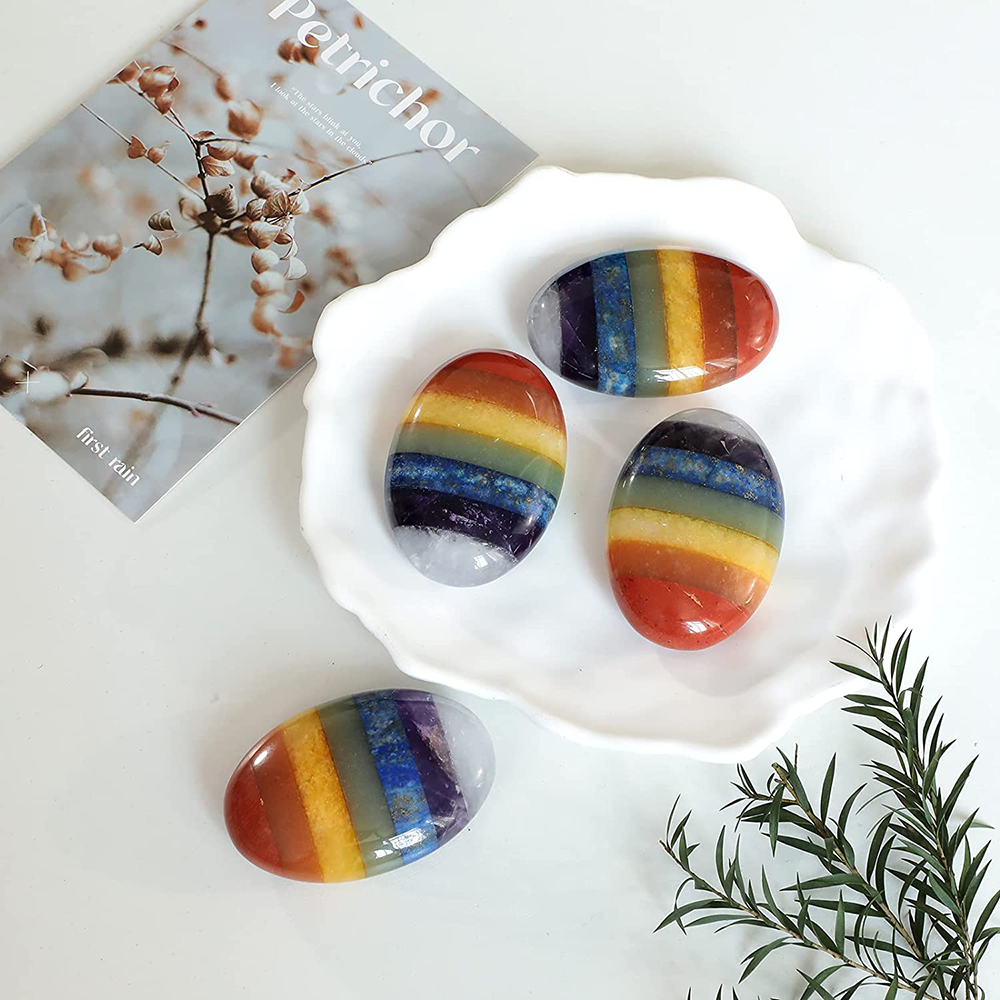 Unlock the power of your chakras with 7 Chakra Crystal Palm Stone! Use it to help you reach higher vibrational frequencies, clear negative energies, and balance energy. Whether for massage spa sessions, Reiki healing, or just visualizing and connecting to one's intuition, this unique tool is recommended by customers who rely on its beauty and profound benefits. Perfect for any crystal enthusiast, 7 Chakra Crystal Palm Stone is an ideal item for promoting peace and mental clarity. Plus, it even makes for a great gift! Discover how 7 Chakra Crystal Palm Stone can reinvigorate your spiritual wellbeing now!