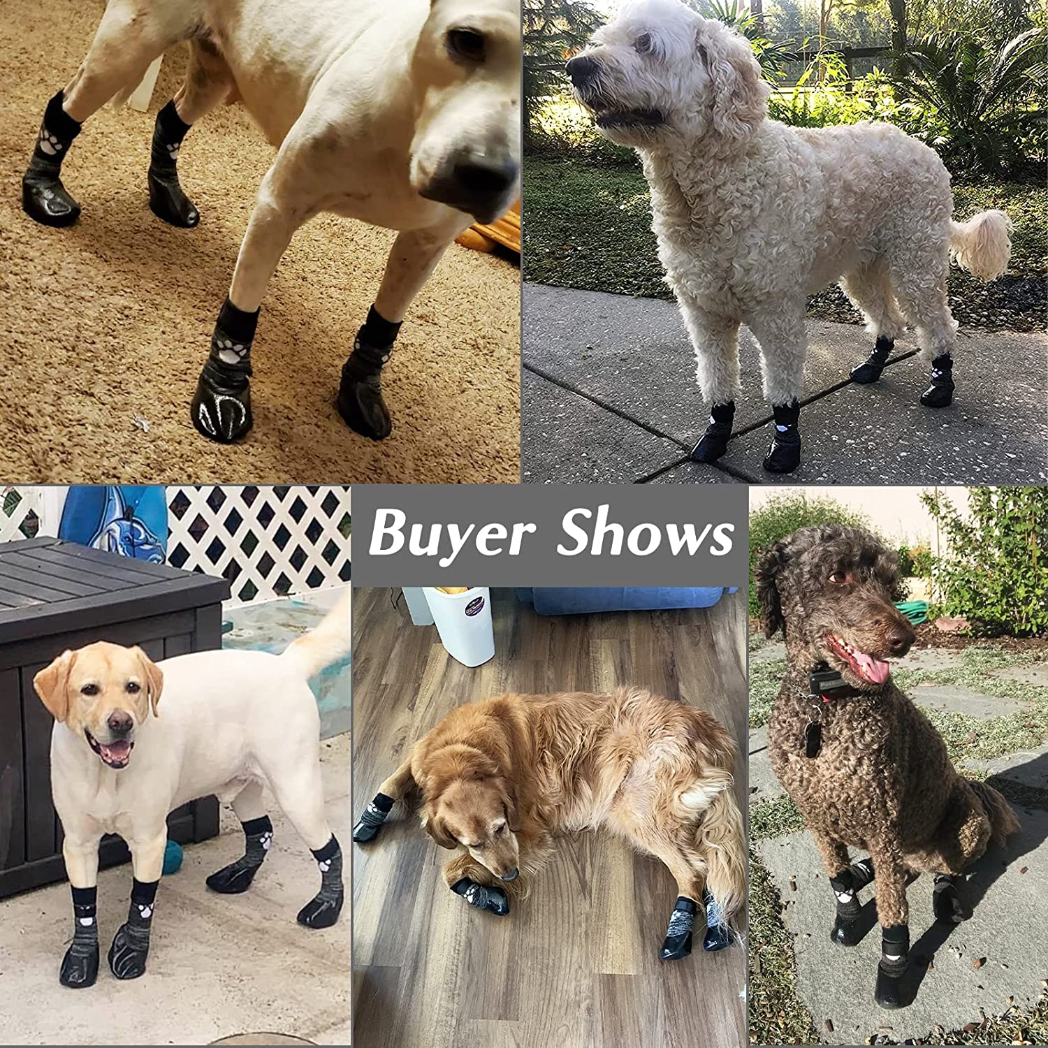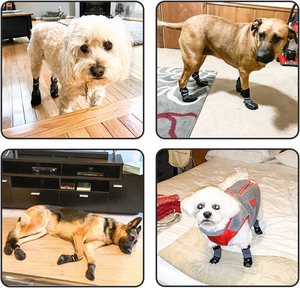 The Dog Socks for Hardwood Floors, Outdoor anti-slip dog socks waterproof socks Paw Protector with Reflective Straps provide excellent traction on slippery surfaces. The material is made from high-quality rubber, so you can be sure that your pup's paws are warm and stay safe and secure even in wet conditions.