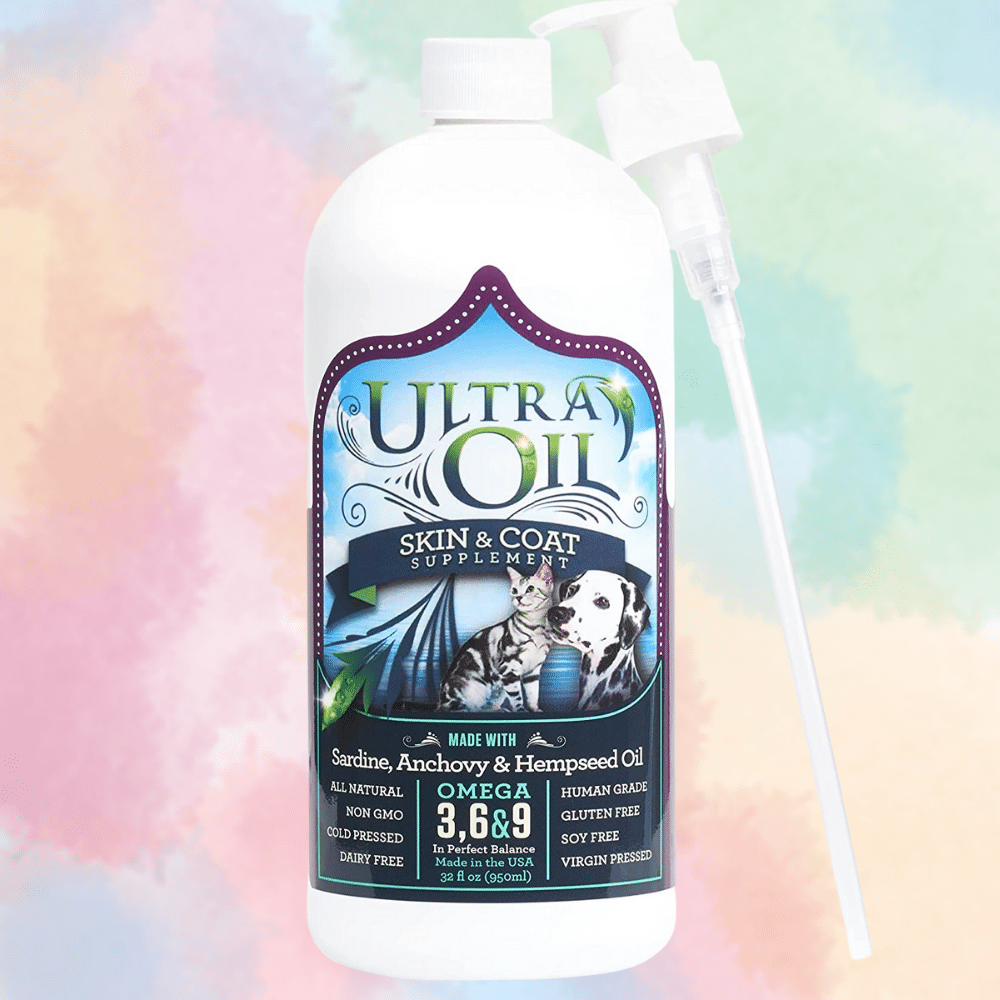 Ultra Oil Skin and Coat Supplement for Dogs is a natural, non-GMO formula that helps to improve skin health and reduce inflammation. The Omega balance of 3, 6, and 9 fatty acids promote healthier skin and fur that shimmers. The easy-to-administer liquid formula is great for pets with digestive issues and helps to reduce joint inflammation and improve mobility.
