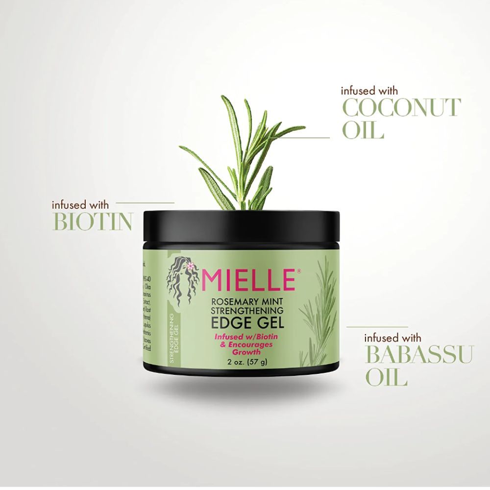 Mielle Organics Rosemary Mint Strengthening Edge Gel is the answer for those looking for a powerful edge control that won't leave your hair feeling greasy or gummy.