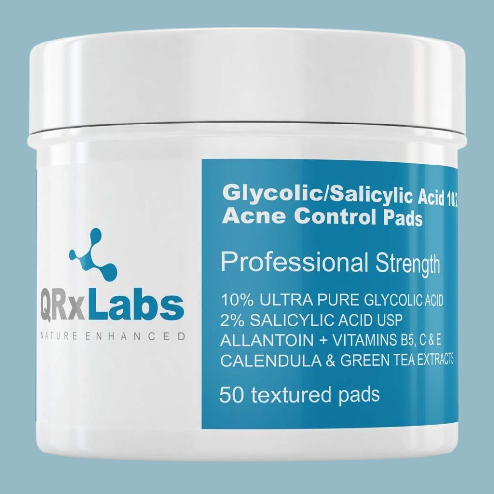 QRxLabs Glycolic/Salicylic Acid 10/2 Acne Control Pads are a must have for those looking to get clearer and healthier skin.
