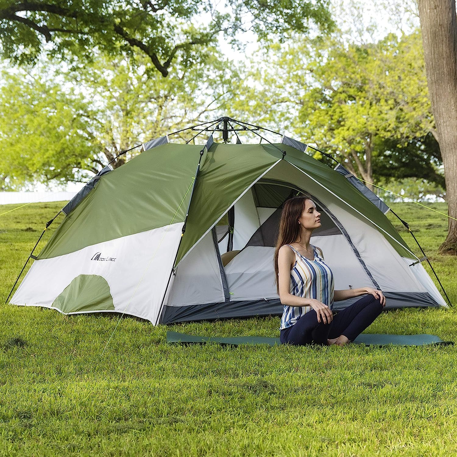This camping tent can hold up to 5 people and even accommodate a large dog. It is rated for up to 250 lbs, so it can comfortably fit you, your family, plus all of your camping gear.