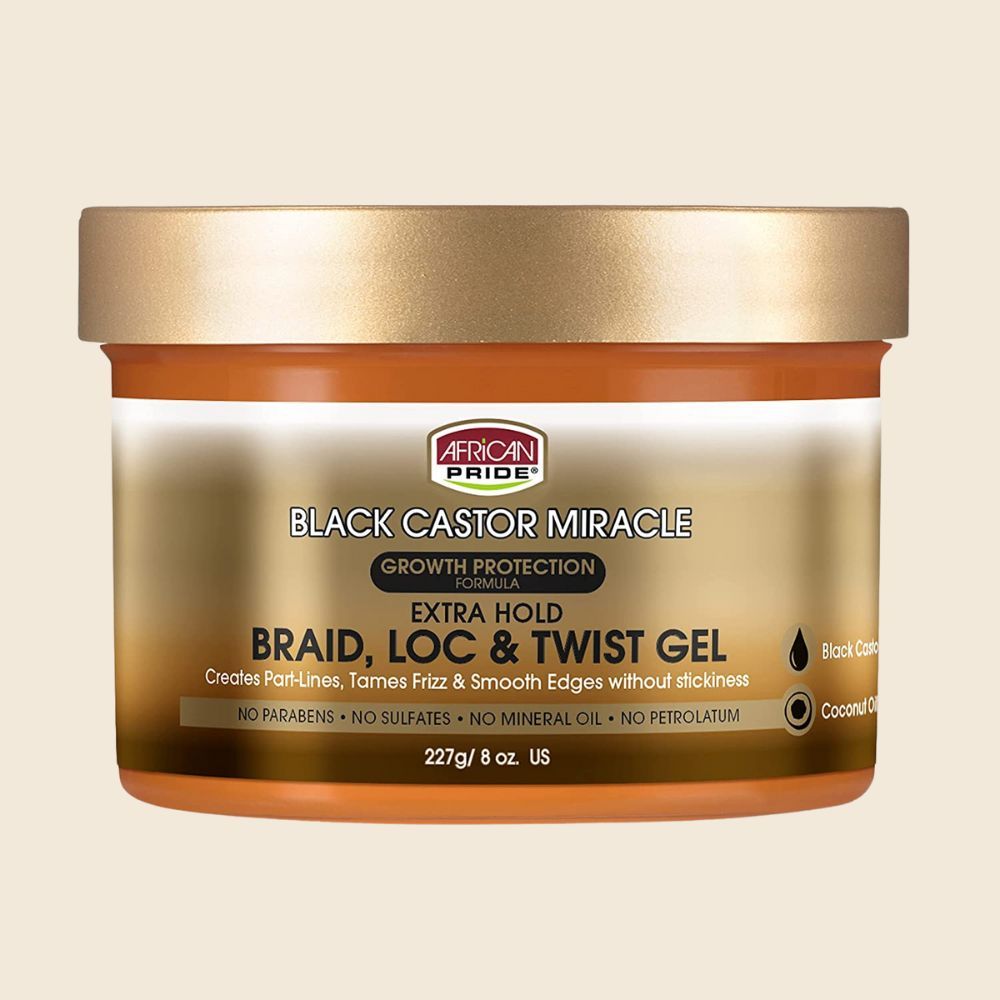 Get your African Pride Black Castor Miracle Extra Hold Braid, Loc, & Twist Gel today and get the ultimate hold and shine you've been looking for!
