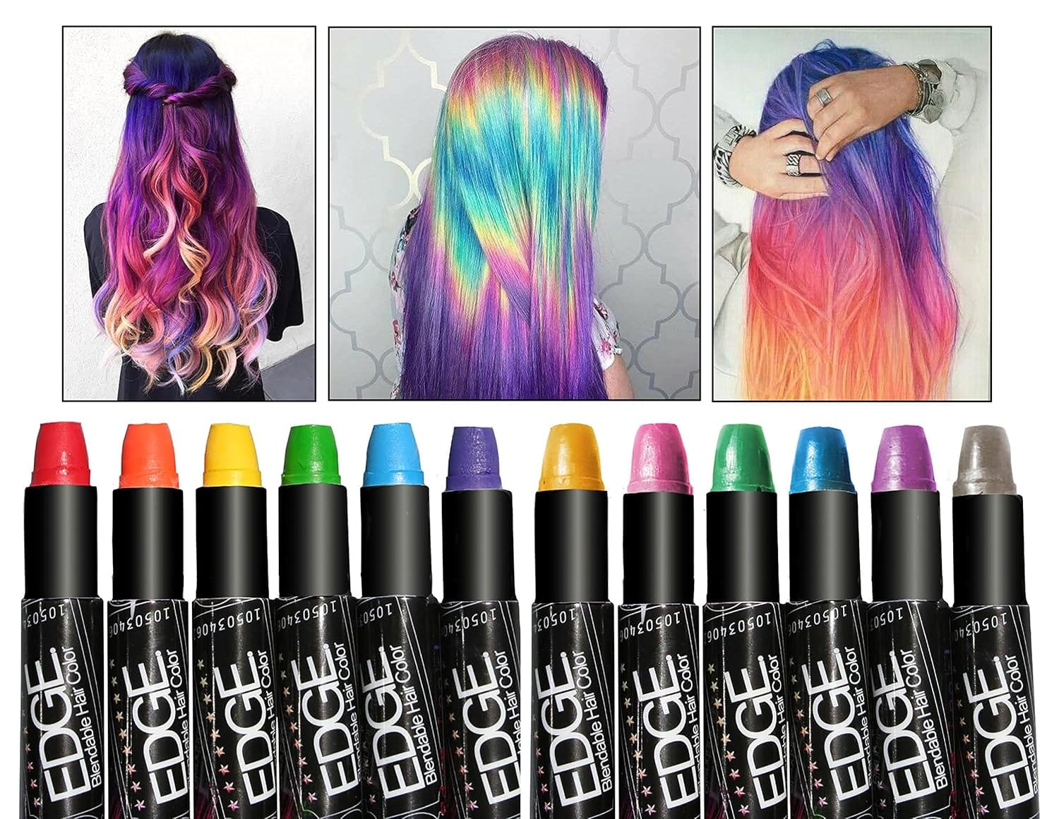 With over 80 applications per hair chalk stick, these semi-permanent color sticks are safe for both hair and skin and will last for up to three days.