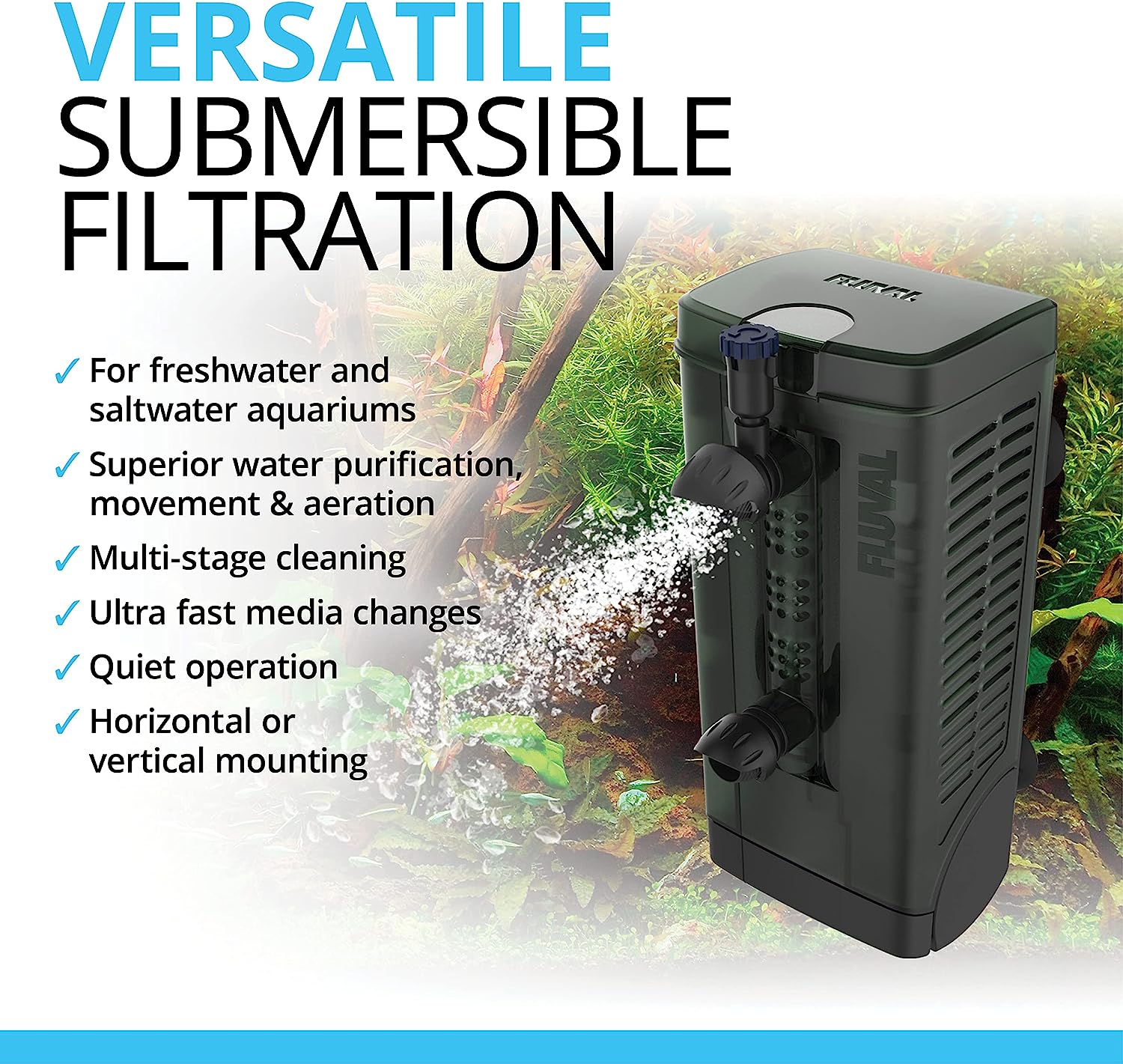 Best of all, it is designed to work with freshwater, saltwater, and reptile environments up to 30 gallons. With its advanced design and ease of use, the Fluval U2 underwater filter is one of the best internal aquarium filters available.