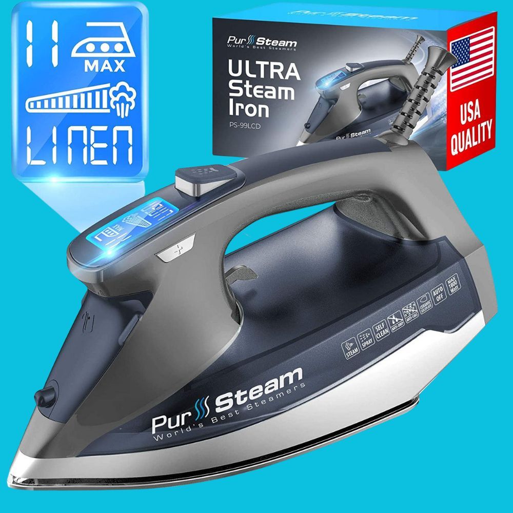 The PurSteam Professional Grade Steam Iron is designed to make ironing easier and faster. It features an LCD screen with 11 professional presets, so you can choose the perfect temperature and steam level for whatever garment you're working on.