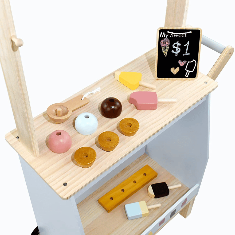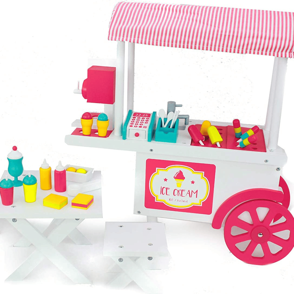 Whether it's an afternoon in their playroom or part of their next birthday party celebration, this ice cream cart will allow for extended imaginative fun!