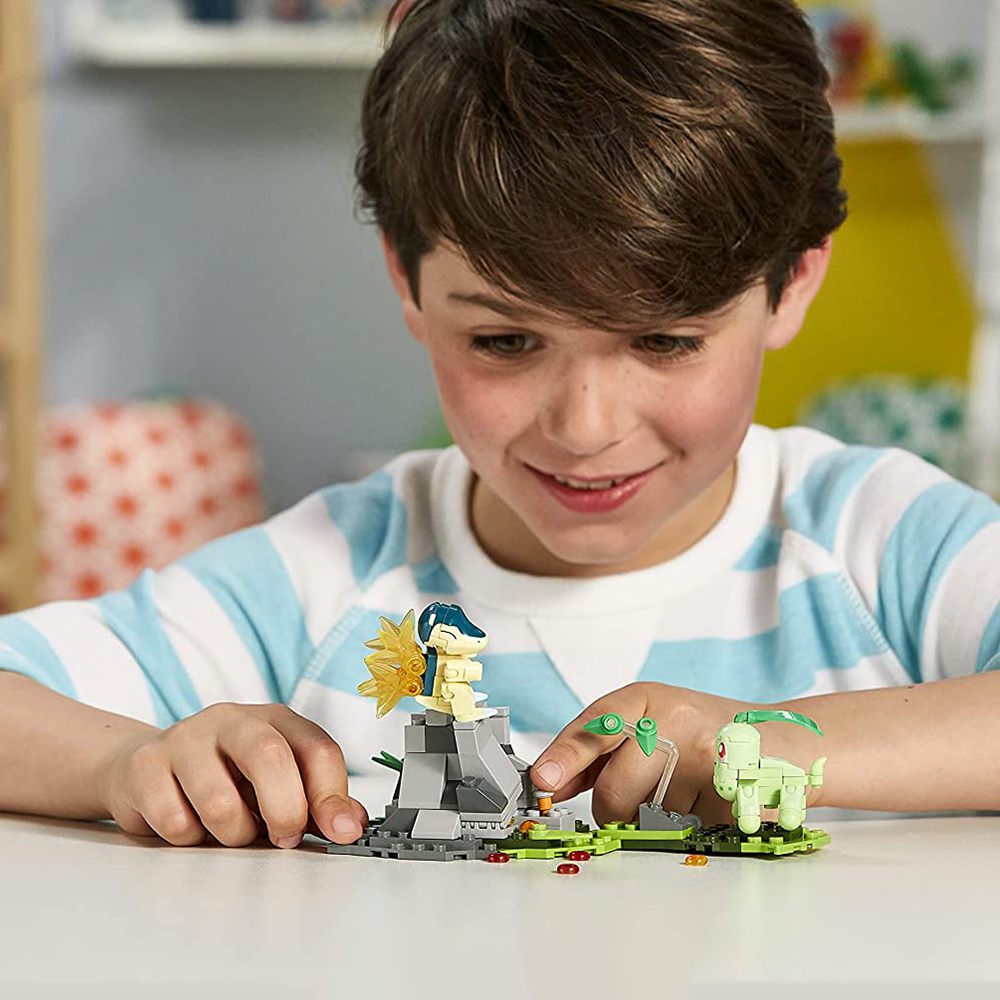This set is the perfect balance of challenge and fun! It has just the right amount of pieces to keep your child engaged without overwhelming them; kids aged 6 and up will love the Mega Construx Pokémon Chikorita vs. Cyndaquil Construction Set! Not only is it easy for them to assemble, but also includes step-by-step instructions along with a handy storage bag that allows your kids to take their set on the go. Plus, they'll be able to combine this construction set with other Mega Construx sets so they can construct custom Pokémon worlds of their own design--how awesome is that? So, if your son is a Pokémon fanatic and Lego enthusiast, then the Mega Construx Chikorita vs. Cyndaquil Set is perfect for them!