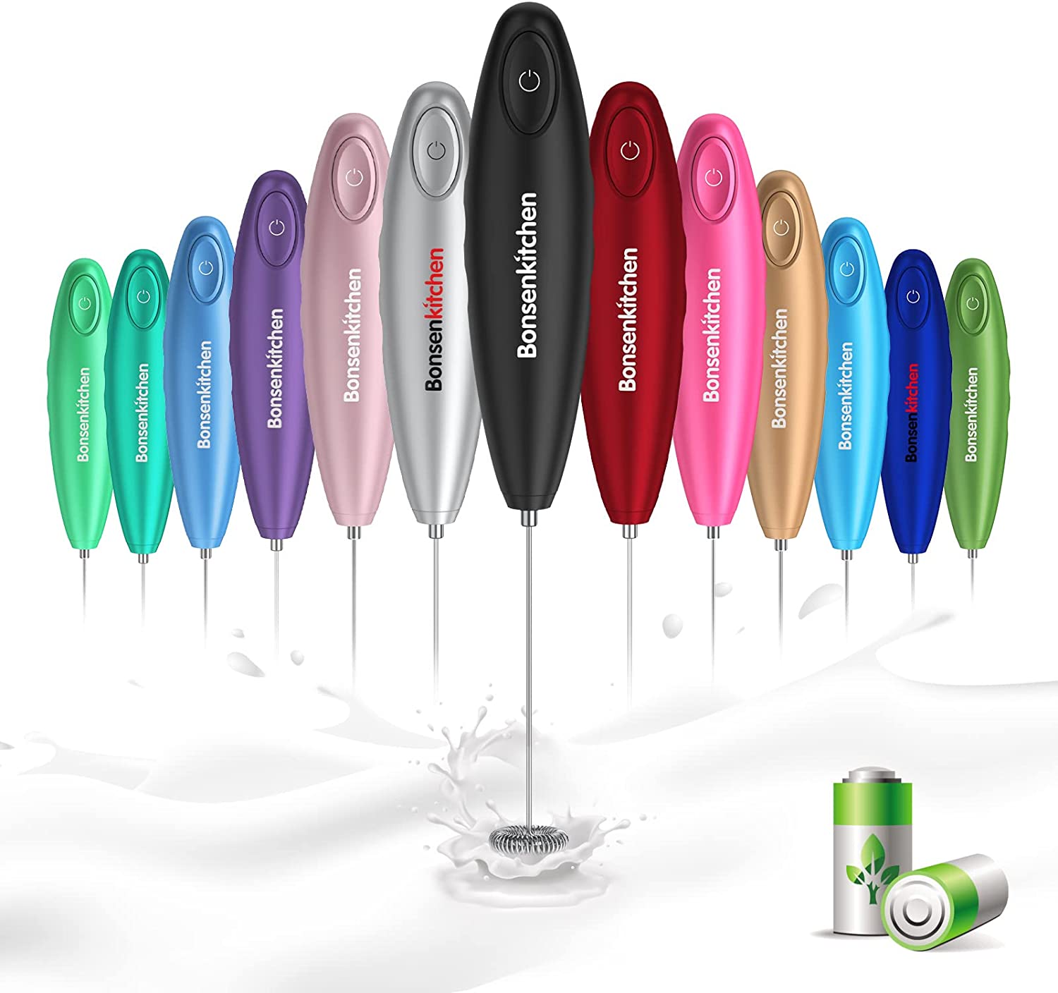 Bonsenkitchen Handheld Milk Frother is battery operated and includes two AA batteries. It has a simple one-touch switch with a powerful motor and a low noise level. To use it, just put it into a container with liquid food up to approx 1/3 to froth. Additionally, the stainless-steel shaft is easy to be cleaned in mild soapy water with the whisk moving or just put it into fresh running water. Plus, it is important to keep the temperature of the milk below 60 degrees for perfect foam. Get your own Bonsenkitchen Handheld Milk Frother today to enjoy your perfectly-frothed coffee!