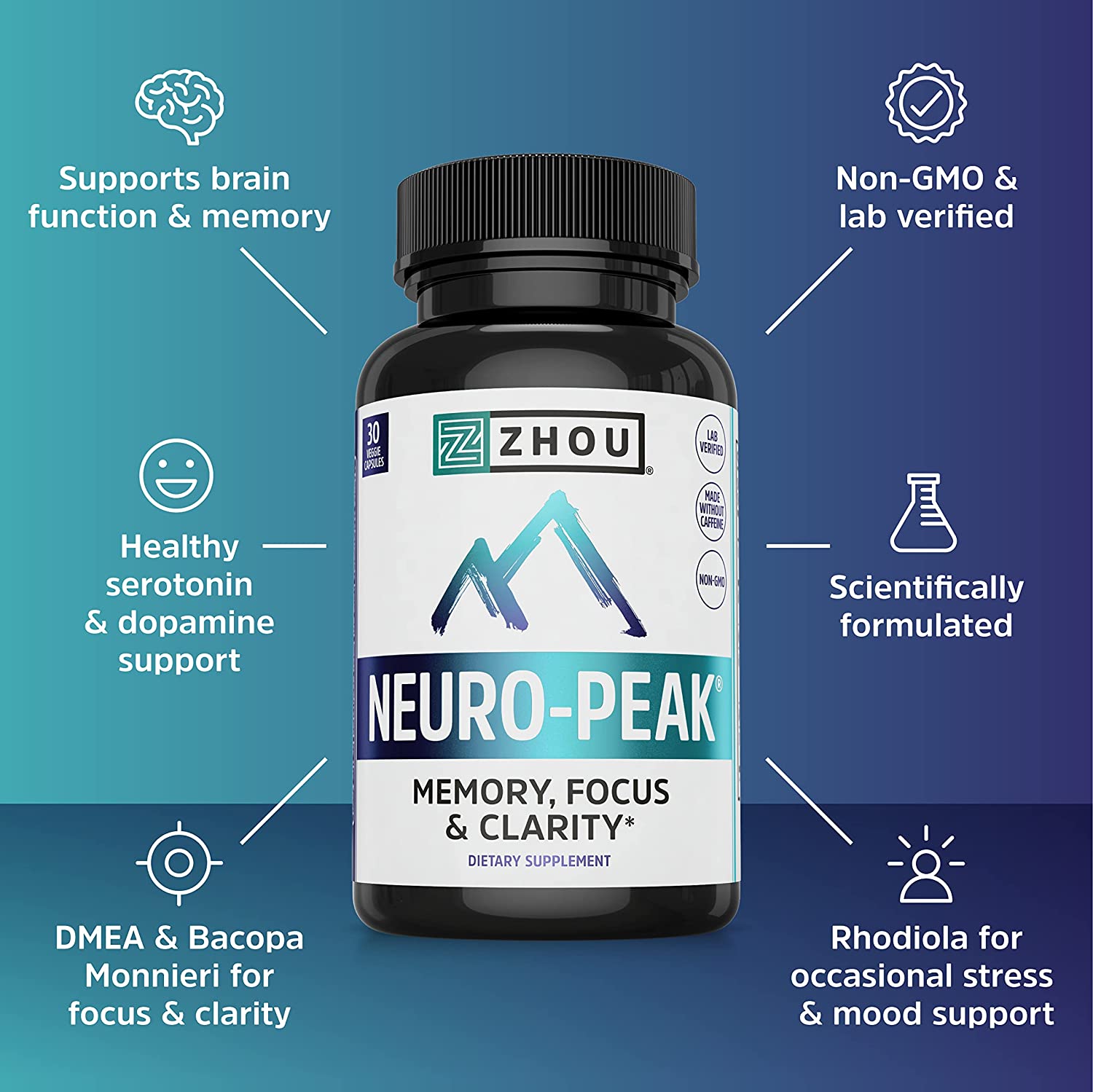 If you're looking for nootropic supplements that will help support memory, focus, and clarity, you'll want to check out Zhou Neuro Peak Brain Support Supplement. This unique blend of ingredients is specially designed to help improve cognitive function and provide an extra boost of motivation when needed. Additionally, it's perfect for those who need to stay sharp and focused over longer periods of time.