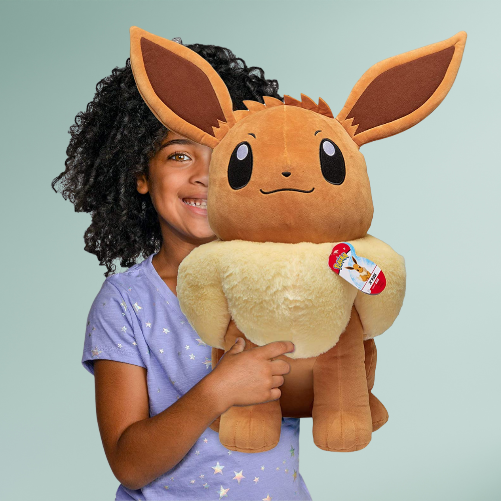 Bring home the adventure and delight of Pokémon with Wicked Cool Toys' Giant Eevee Plushie! An officially licensed product, it's perfect for fans young or old. It's just one in a long line of amazing Pokémon products from Jazwares, each richly detailed to look like they've stepped right out of the animated show. Join Eevee and your other favorite Poké pals as you explore an action-packed world full of super soft cuddles that will bring your favorite characters to life! If you're looking for an amazing gift to surprise any Pokémon fan, then the Giant Eevee Plushie is the way to go! So, pick up your own jumbo plushie to complete your Pokémon collection and unleash the power of cuddles today!