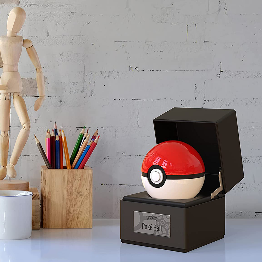 This Pokéball Replica is the perfect gift for any Pokémon fan and collector. With its finely detailed metal shell and premium painted finish, it is a beautiful and accurate replica of the iconic Pokéball, warming any Pokémon enthusiast's heart. It also features proximity sensing technology, with the button glowing brightly when it senses motion, and a lift-to-display illuminated presentation case. You won't want to miss out on this incredible Pokéball Replica!