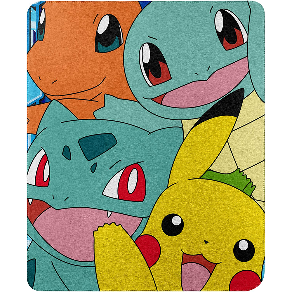Kids will love the bright colors and fun graphics of this Pokémon Meet the Group Fleece Throw Blanket. It features four classic Pokémon characters, Pikachu, Squirtle, Charmander, and Bulbasaur, and is sure to delight any Pokémon lover. This blanket measures 45" x 60" and is made of 100% polyester, making it perfect for snuggling up with. It's also machine washable, so it's easy to keep clean and looking new.