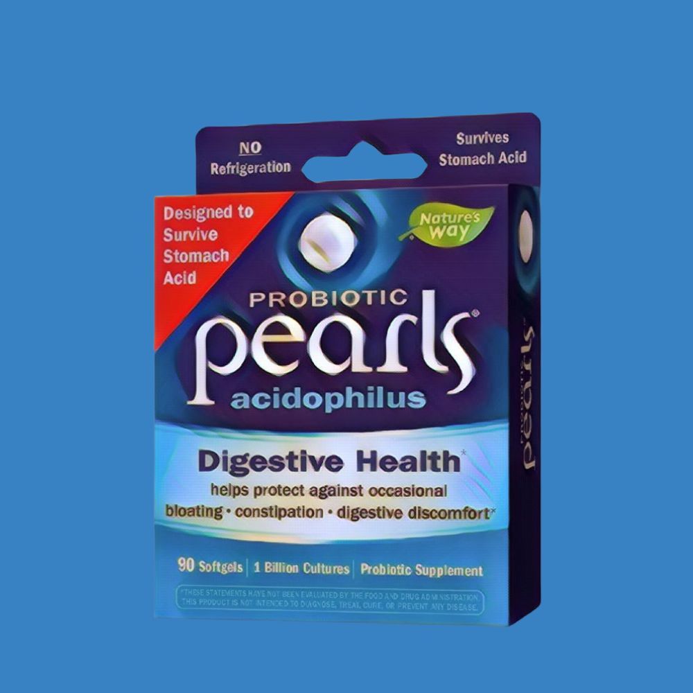 Nature's Way Probiotic Pearls is a probiotic supplement that comes in softgel form. The pearls do not need to be refrigerated and are gluten-free, sugar-free, and salt-free.