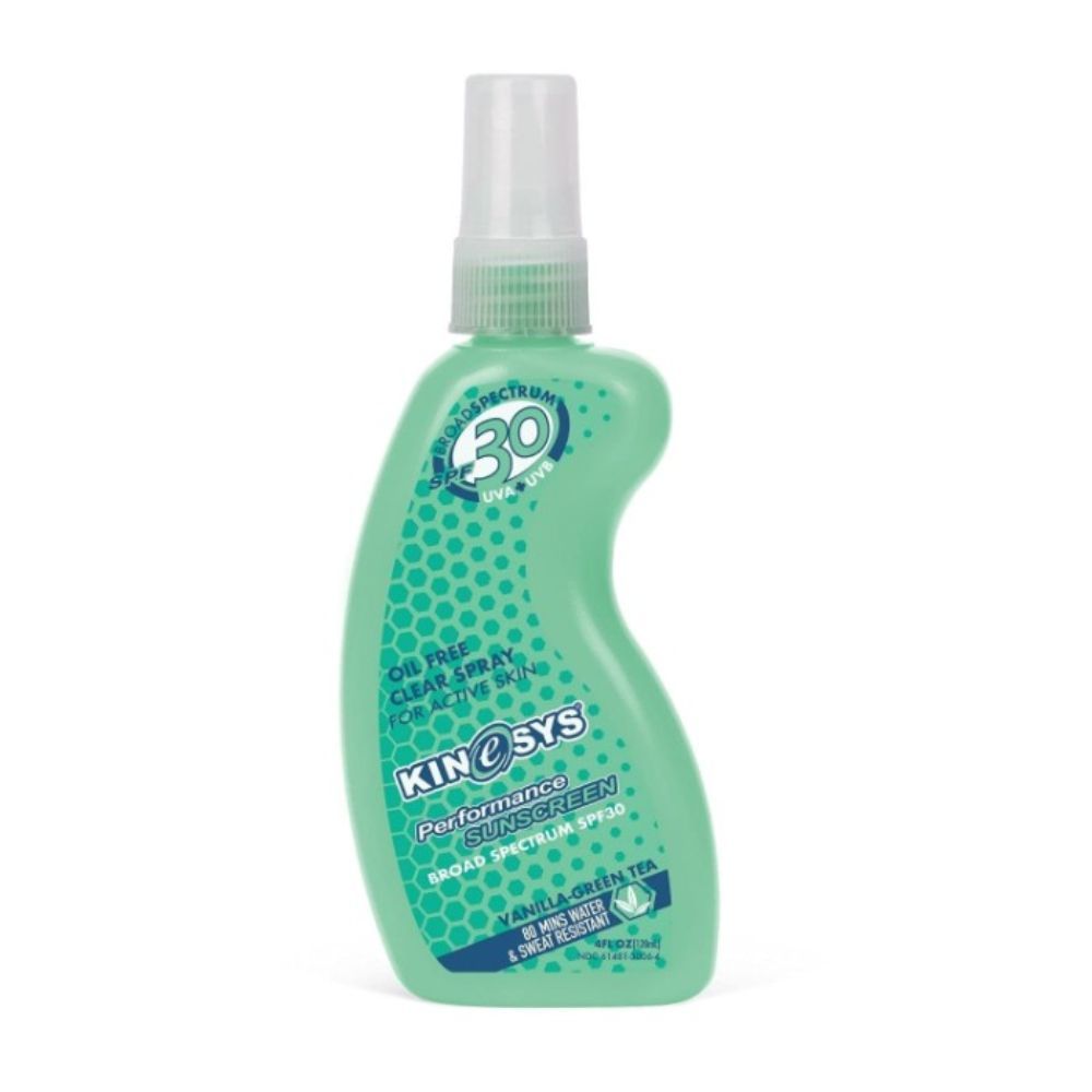 The KINeSYS SPF 30 Vanilla-Green Tea Spray Sunscreen is easy and quick to apply, and dries fast to a silky matte finish. It's sweat and water resistant for up to 80 minutes, and is light enough that you won't even know you're wearing it. It's also 100% oil free, making it ideal for sports and outdoor activities, as it won't affect your grip. With its compact size, it delivers 700+ sprays in the family-size 4oz bottle, so you don't have to worry about running out. Get your own KINeSYS SPF 30 Vanilla-Green Tea Spray Sunscreen today!